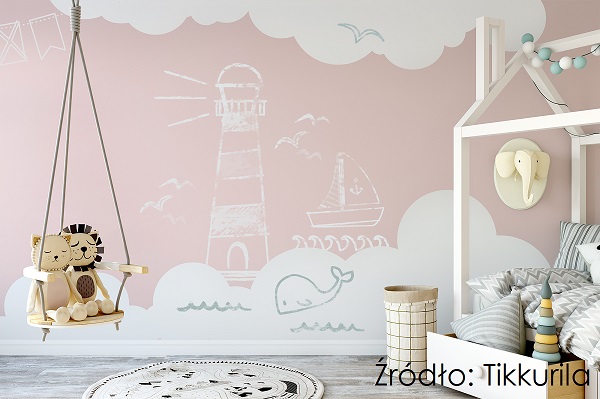 A czy coś stoi na przeszkodzie, żeby w pokoju dziecka w białych falach pływały wieloryby, a latarnia ostrzegała swym światłem statki na tle nieba w urzekającym różu F336 Marshmallow? Wyobraźnia małych księżniczek i piratów nie ma granic, a z farbami Tikkurila można w pokoju dziecka stworzyć niezwykle inspirujący świat do jej rozwoju.